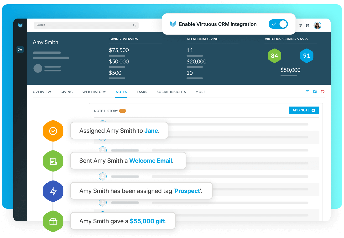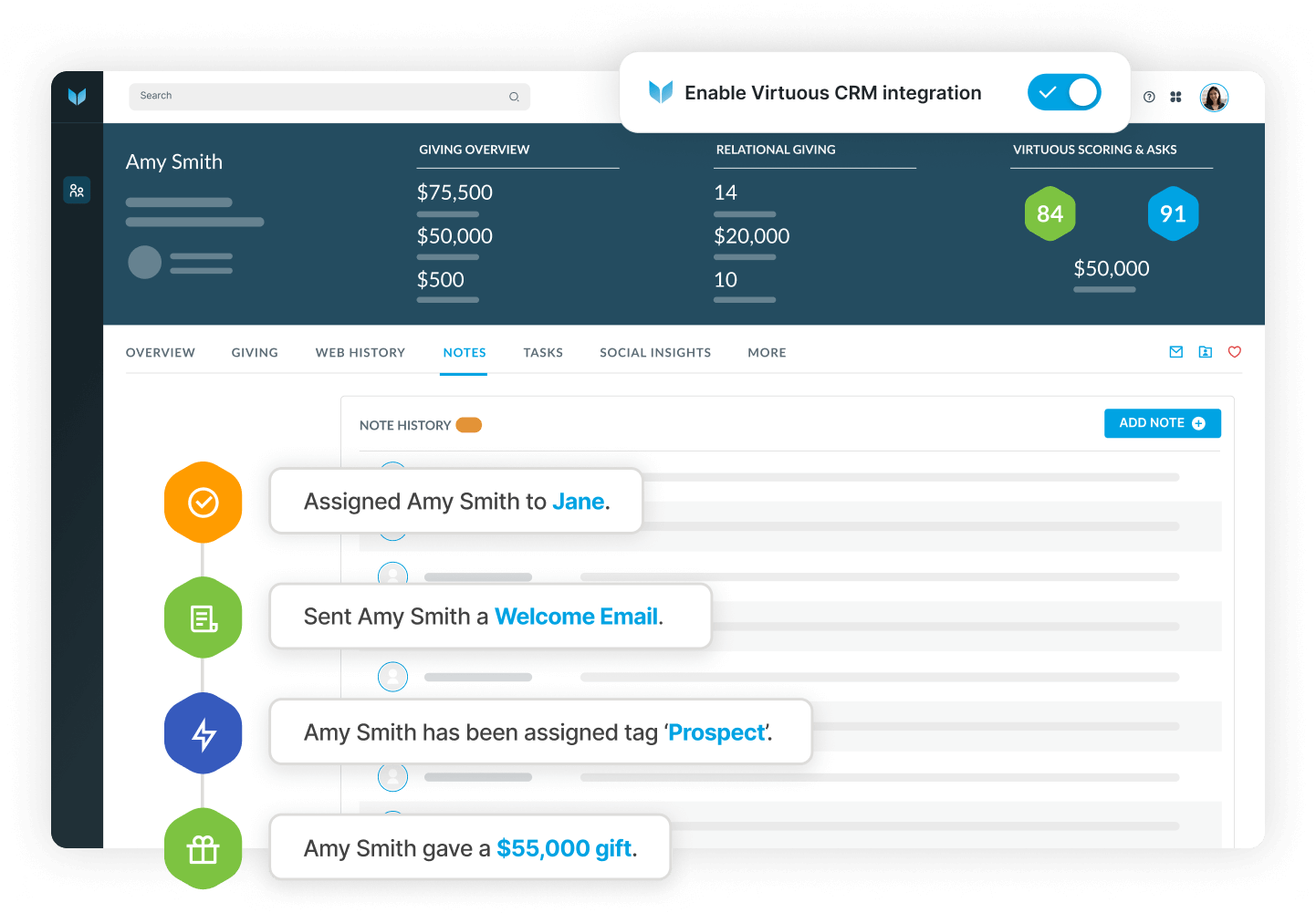 Native sync with Virtuous CRM+.
